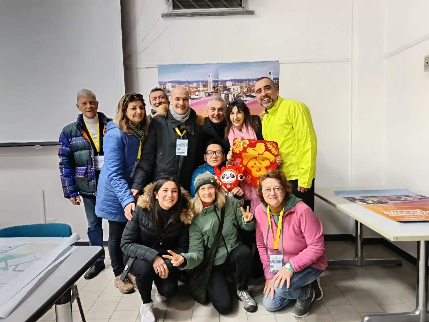 张文全介绍,他2月4日抵达了米兰,2月5日一早在培训中心了解火炬传递的规则和方法,还向工作人员赠送了冰墩墩的徽章、钥匙扣等小礼物。当地时间8点左右,张文全前往传递点举起了火炬的第一棒,完成圣火传递,并拿着“马墩墩”与当地人拍照合影。